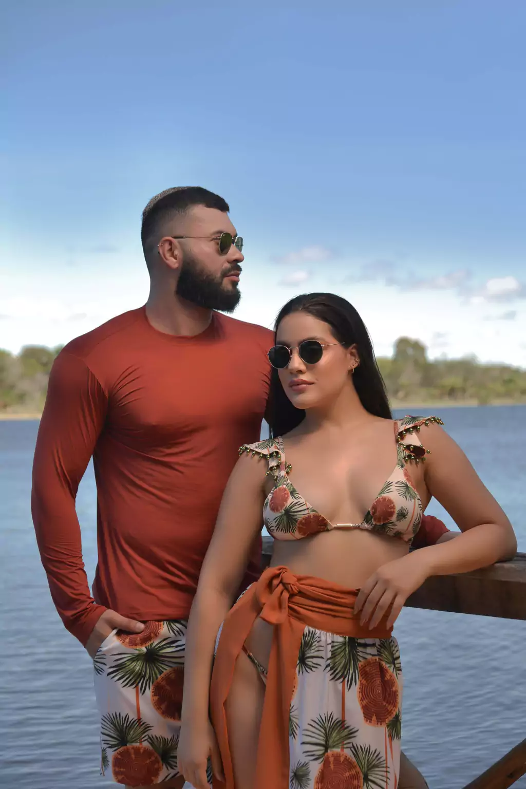 A camisa de proteção UV na cor terracota oferece fator de proteção 50, sendo uma excelente escolha para proteger a pele contra os raios solares. Com tecido tecnológico que bloqueia até 98% dos raios UV, essa peça é ideal para atividades ao ar livre, especialmente na praia ou piscina. A cor terracota traz um tom moderno e sofisticado, além de combinar facilmente com diferentes peças de moda praia. É leve, confortável e permite mobilidade, tornando-a prática e funcional para o uso diário sob o sol.
